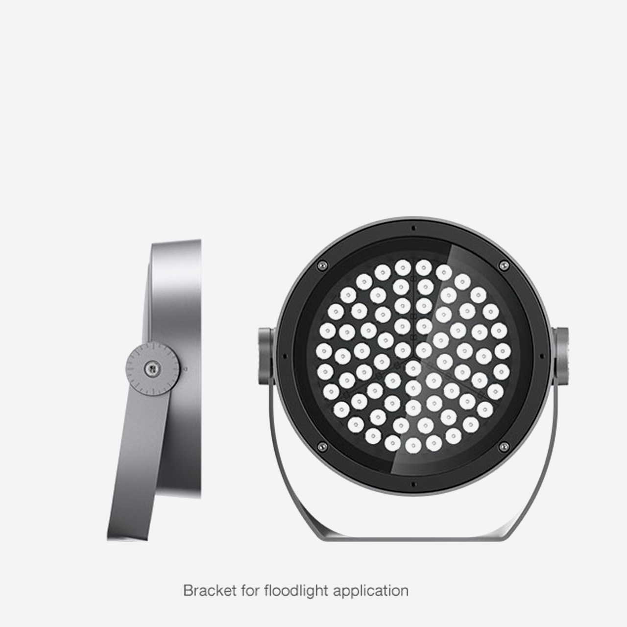 - Comprising an optical compartment in die-cast aluminium and transparent tempered sodium-calcium safety glass. Bracket for application on floodlight and bracket for application on handle to be ordered separately.