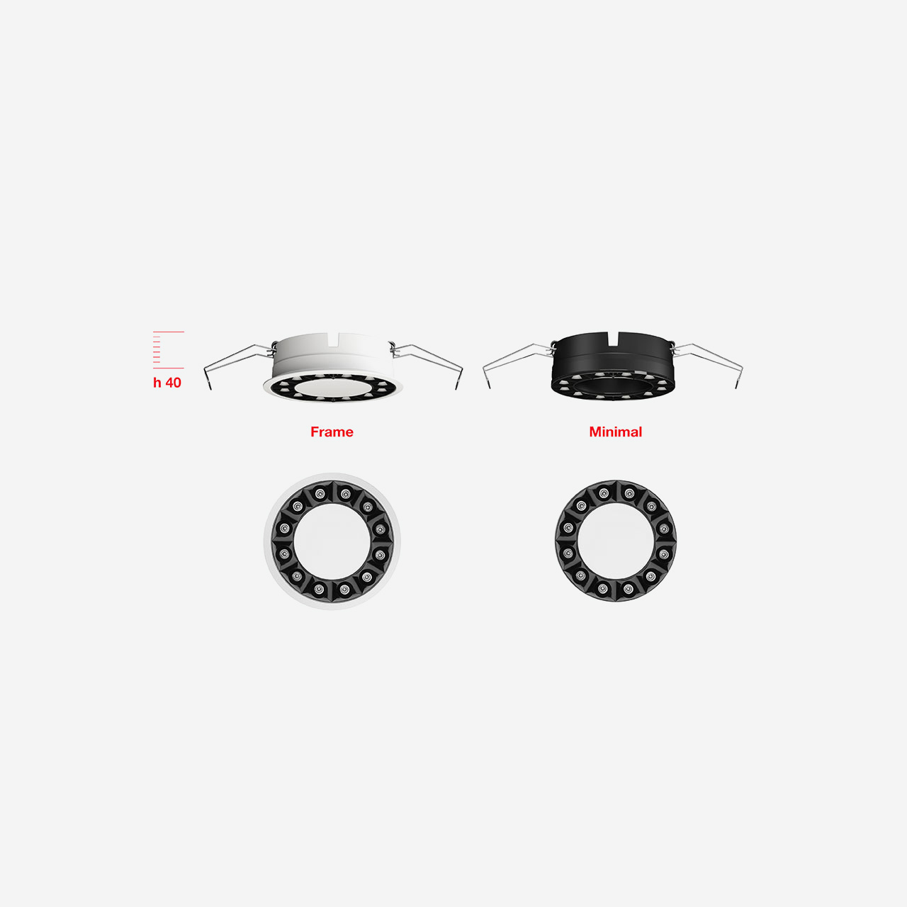 - Flush mount installation on false ceilings of thickness from 12.5 to 25 mm for Minimal versions (without perimeter flap) or 1 to 25 mm for Frame versions (with flap) using torsion springs.