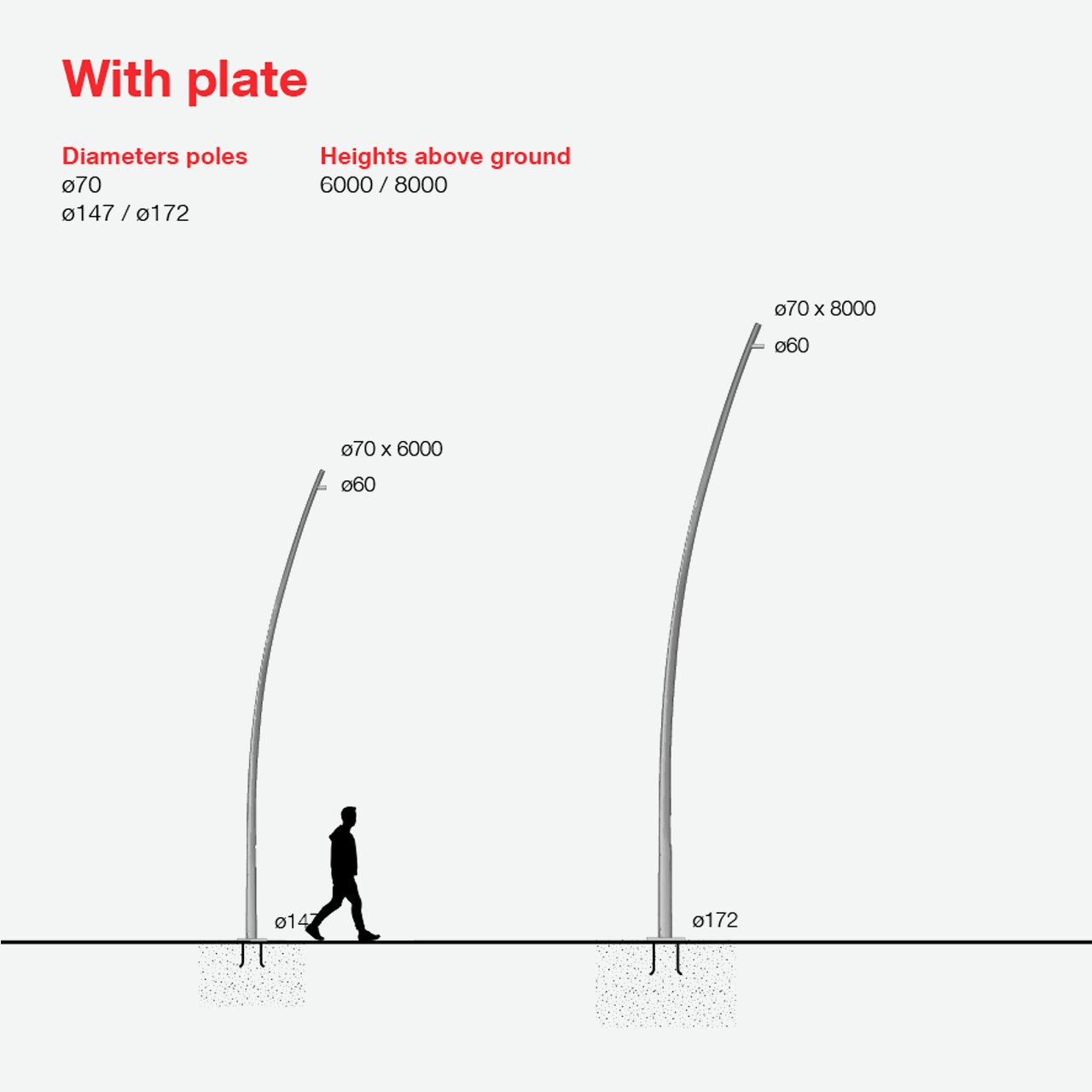 - Poles with an IP3X flush access cover (400x90mm) are earthed inside.