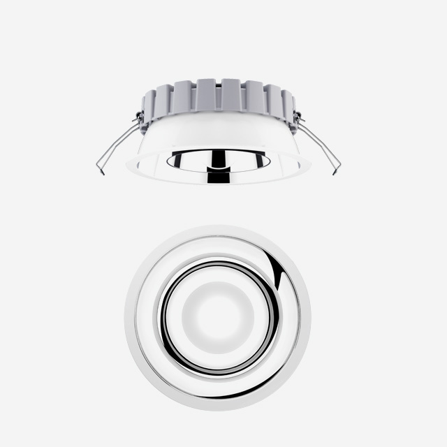 - Reflector in metallic-finish thermoplastic material with scratch protection for excellent lighting efficiency and visual comfort