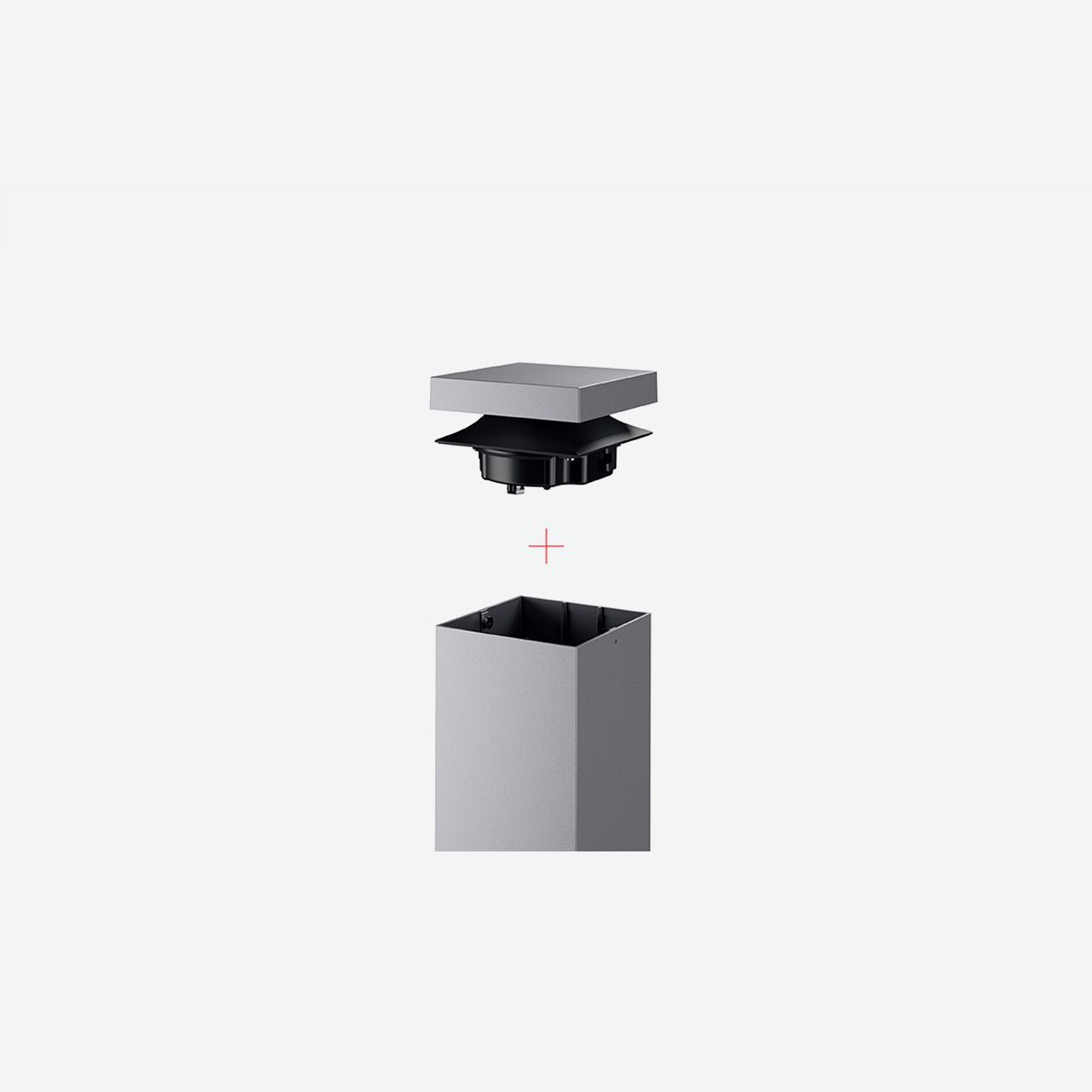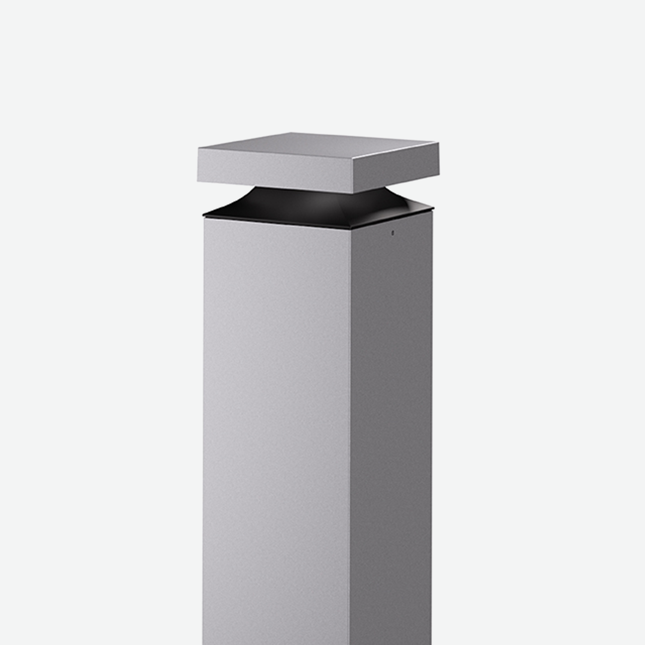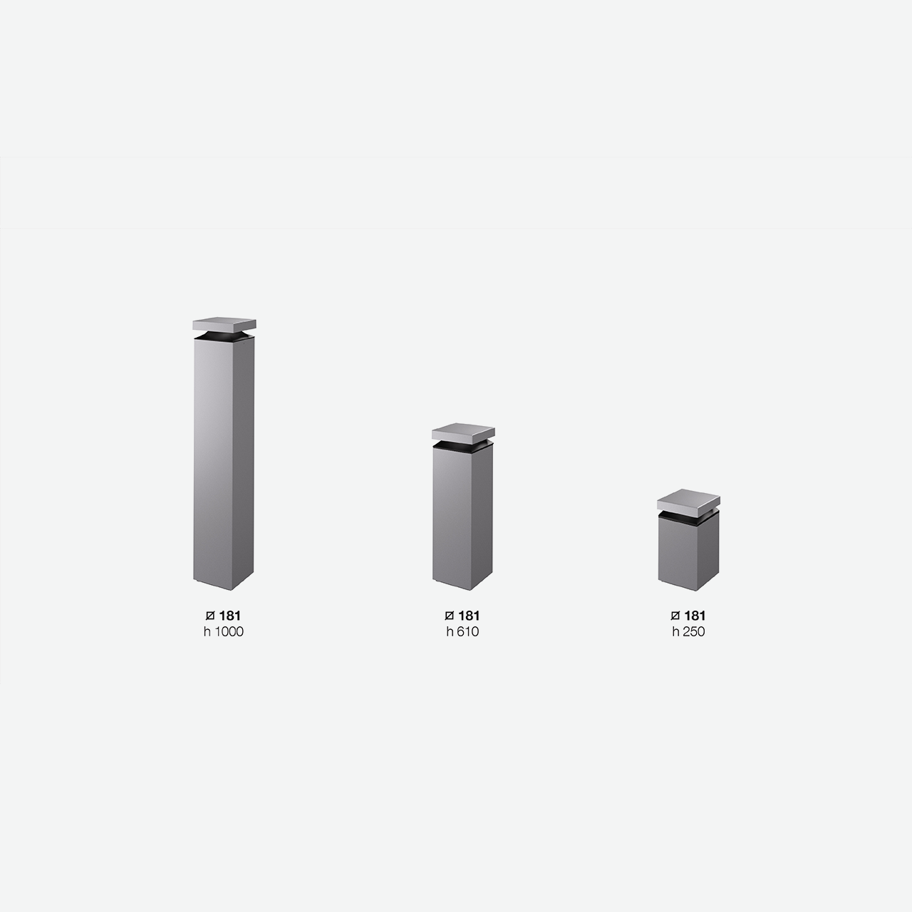 - The post, available with a circular or square section, is made of extruded aluminum. Three stainless steel rods fixed to the base, give the product a high impact resistance.