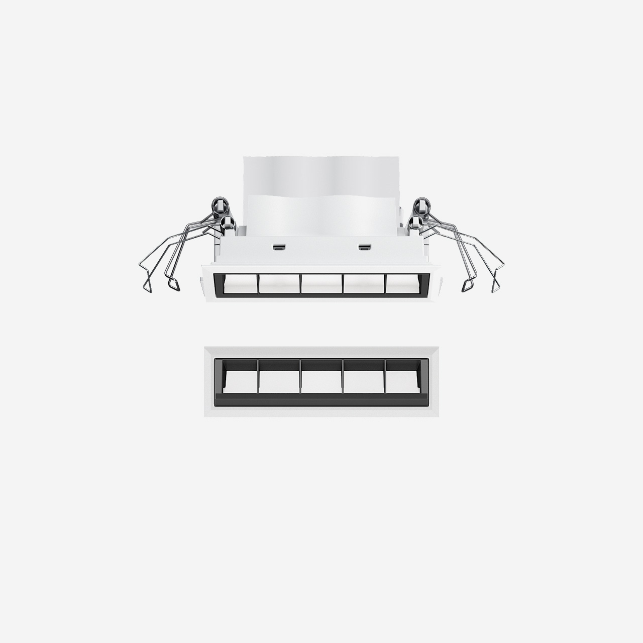 - Optical system (patented) with textured rippled screen, specially designed to achieve effective wall washer distribution on the wall.