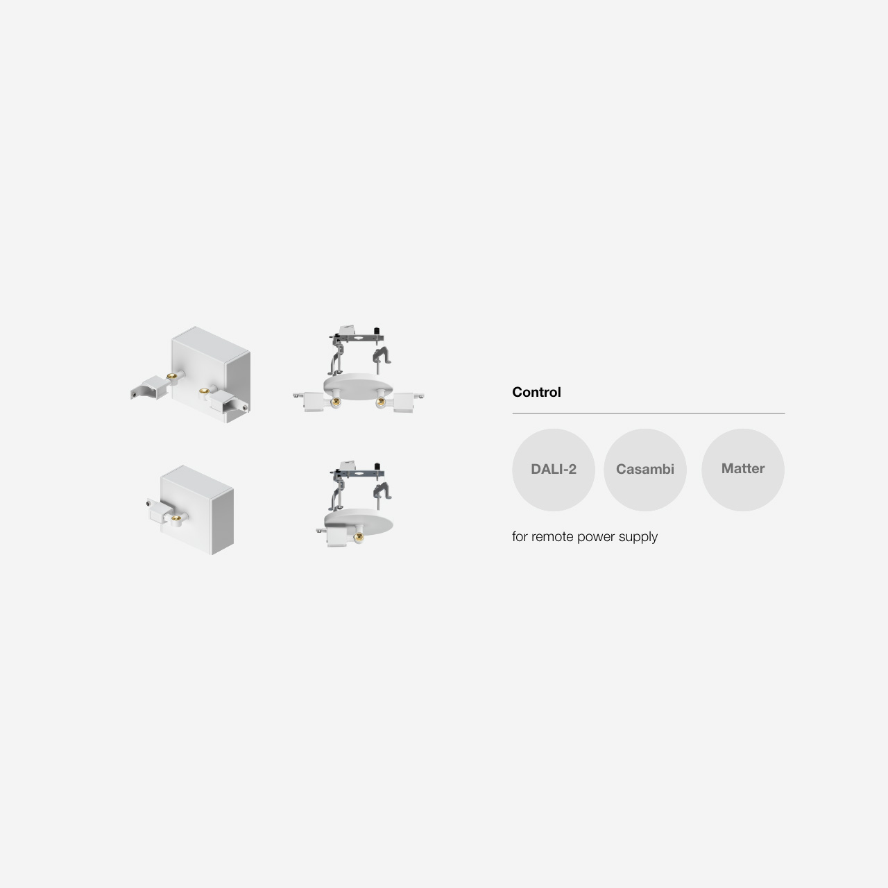 - Available surface bases, canopies, and floor boxes for DALI, Casambi, Matter control.