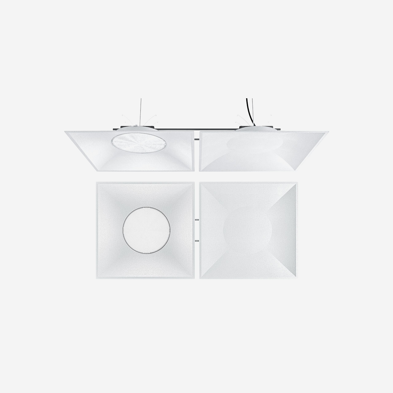 - 596x596 mm luminaire for pendant installation.