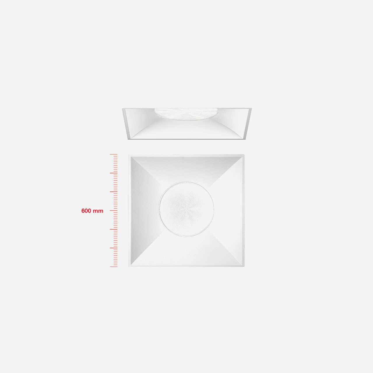 - 596x596 mm luminaire for surface-mounted installation on modular panels.