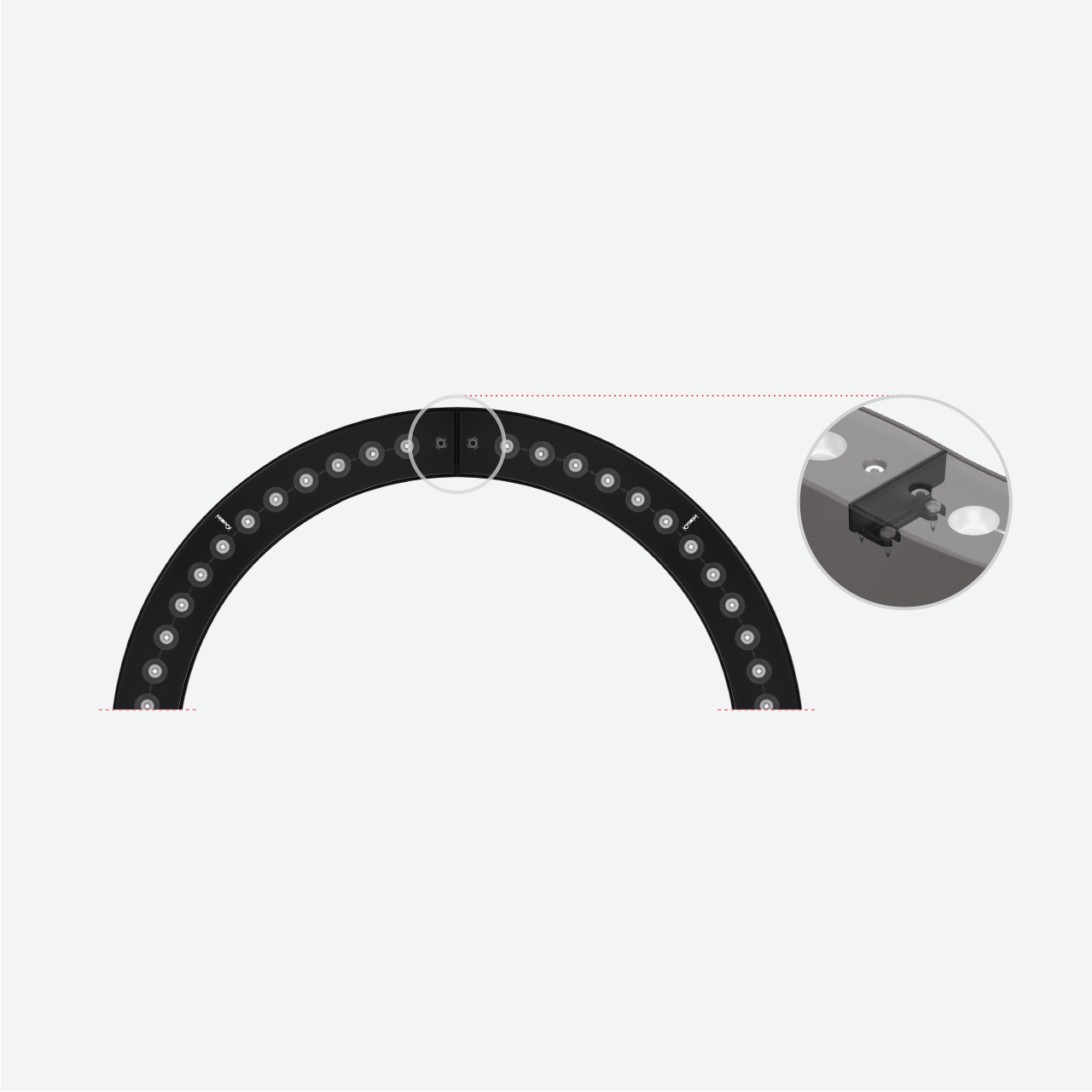- Comprising a body and frame casing to be ordered separately, with a 1/4 circle shape.