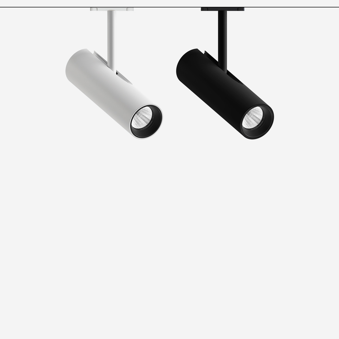 - Miniaturised adjustable spotlight with adapter for installation on a 48V (16A) Filorail track.