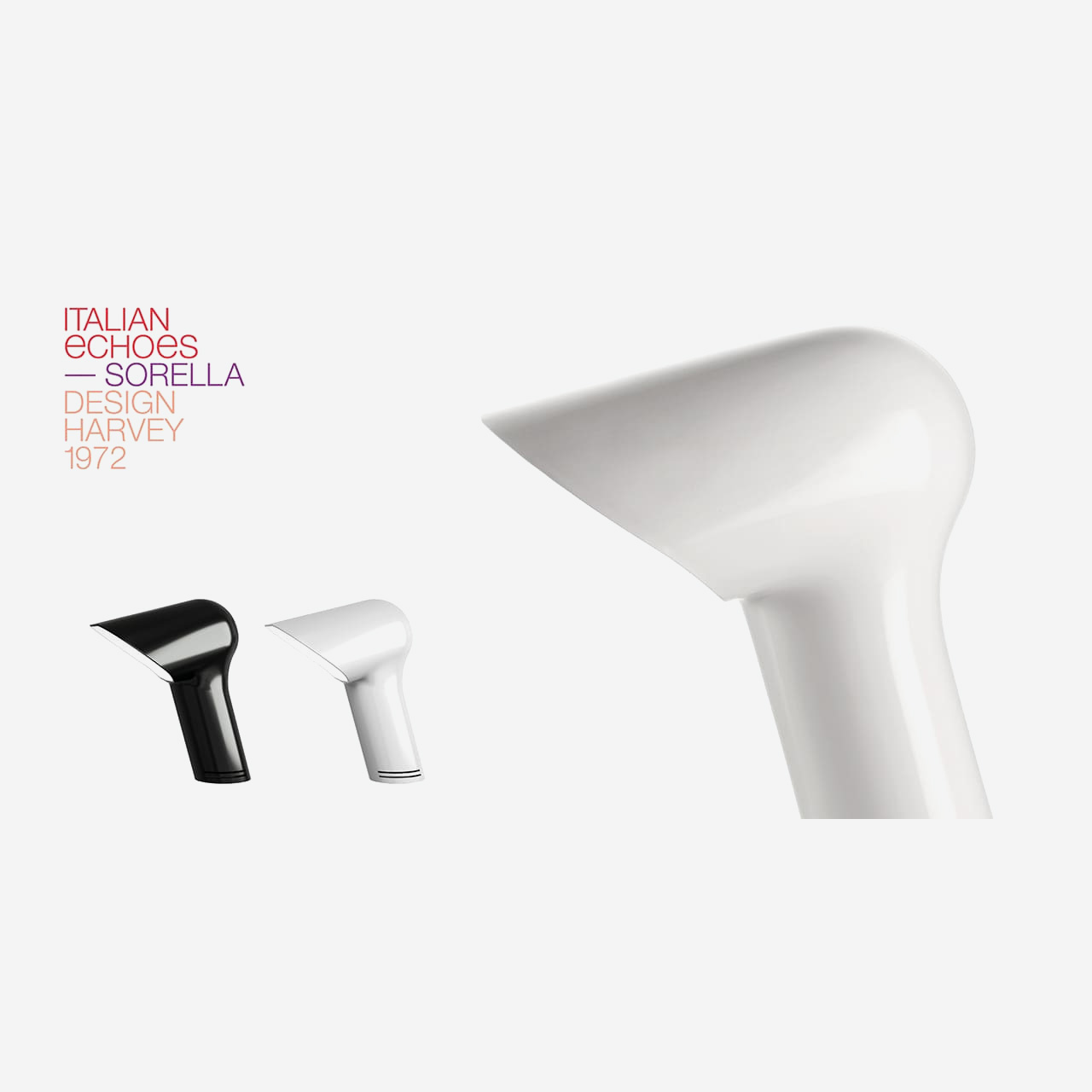 - Despite its oblique design, the body remains stable thanks to a counterweight located in the base.
