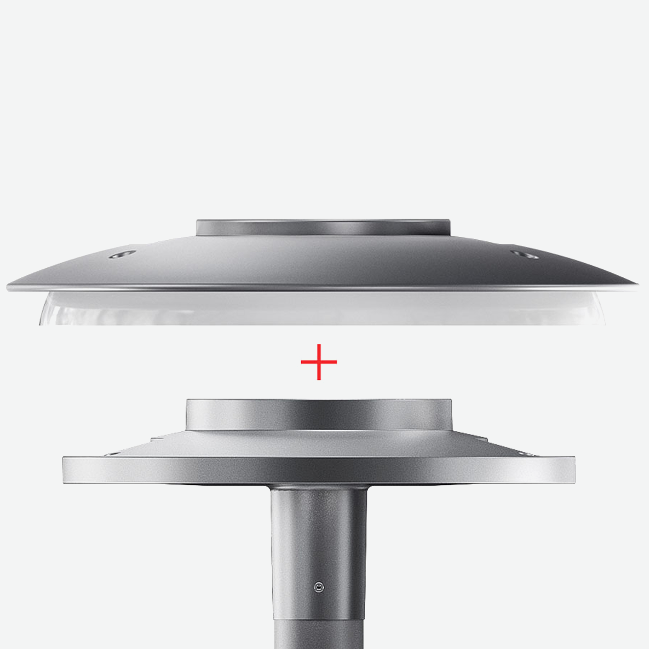 - Absence of upward dispersion of luminous flux when using the black-colored pole head.